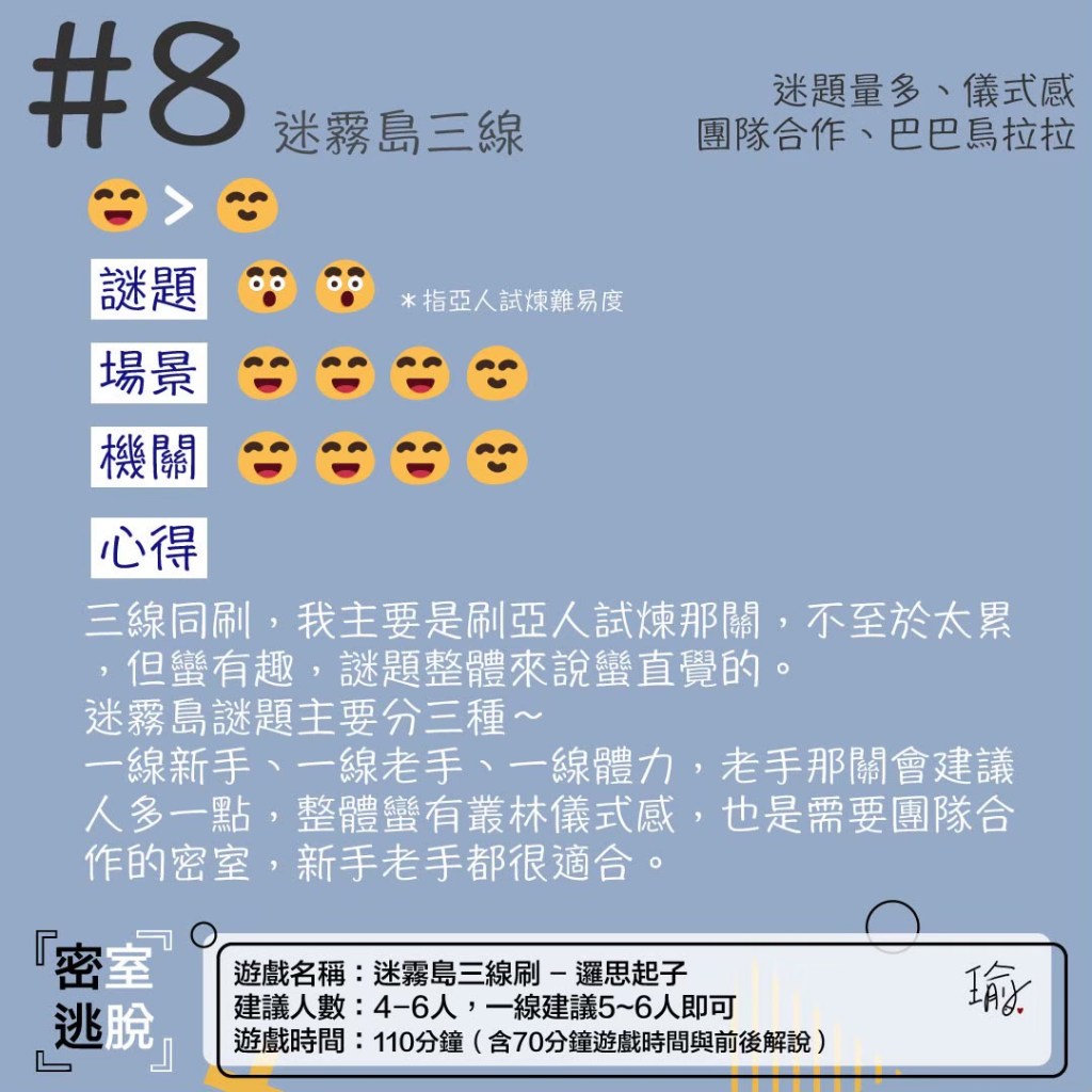 密室類型:叢林、儀式感、各種謎題、團隊合作