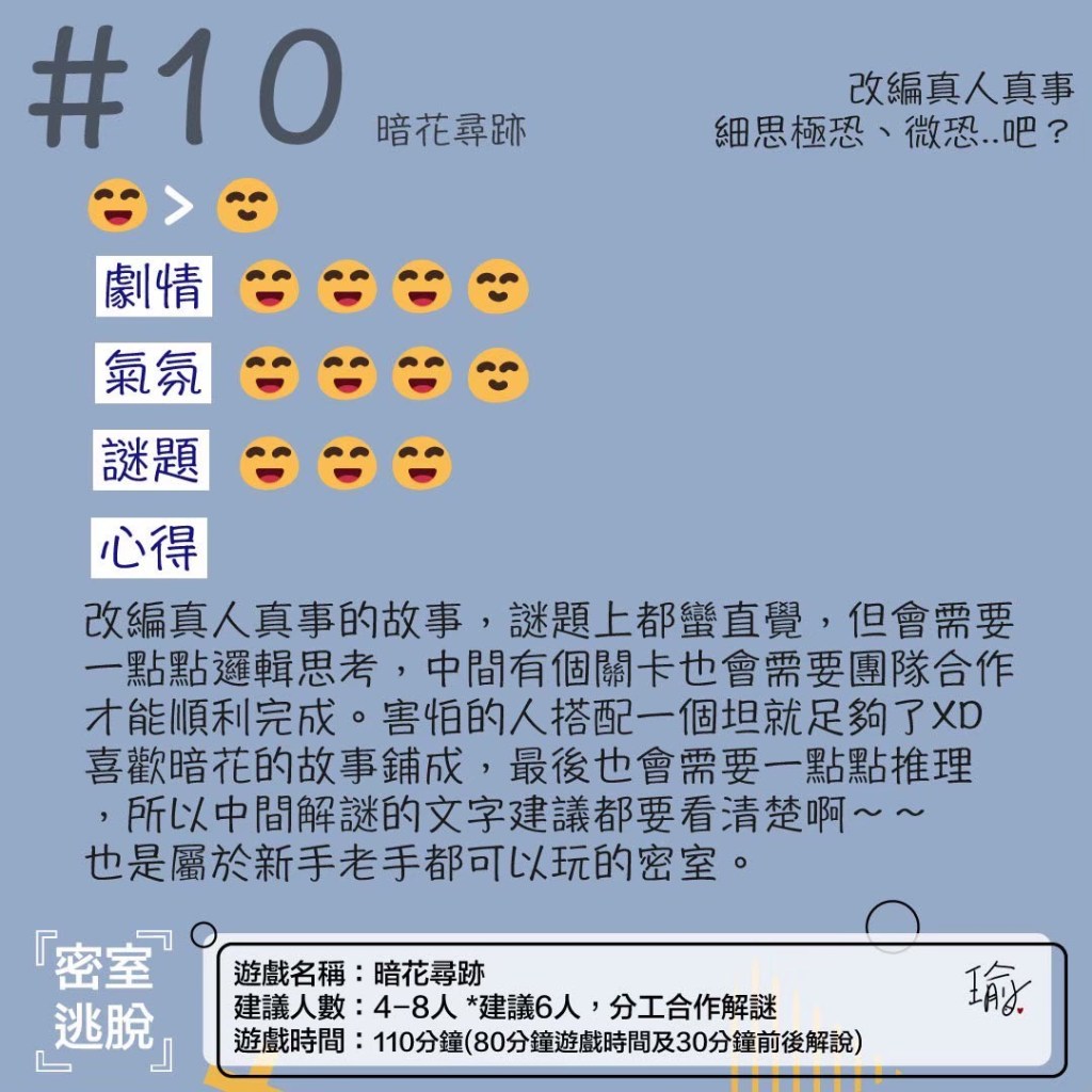 雖然有給每個人一個角色,但我覺得角色跟隨劇情沒有什麼太大的密合性,頂多就是多一個自己的任務,有找到加分,沒找到也不會怎麼樣這樣~算是額外幫密室多一個趣味吧!