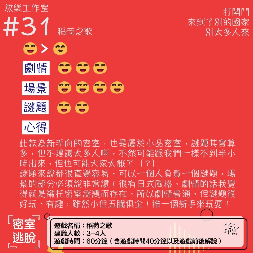 麻雀雖小,五臟俱全呀!真的是放樂工作室的特色,不管場景、謎題設計,都很特色,開了門就來到日式風格,完全不一樣的世界呀!