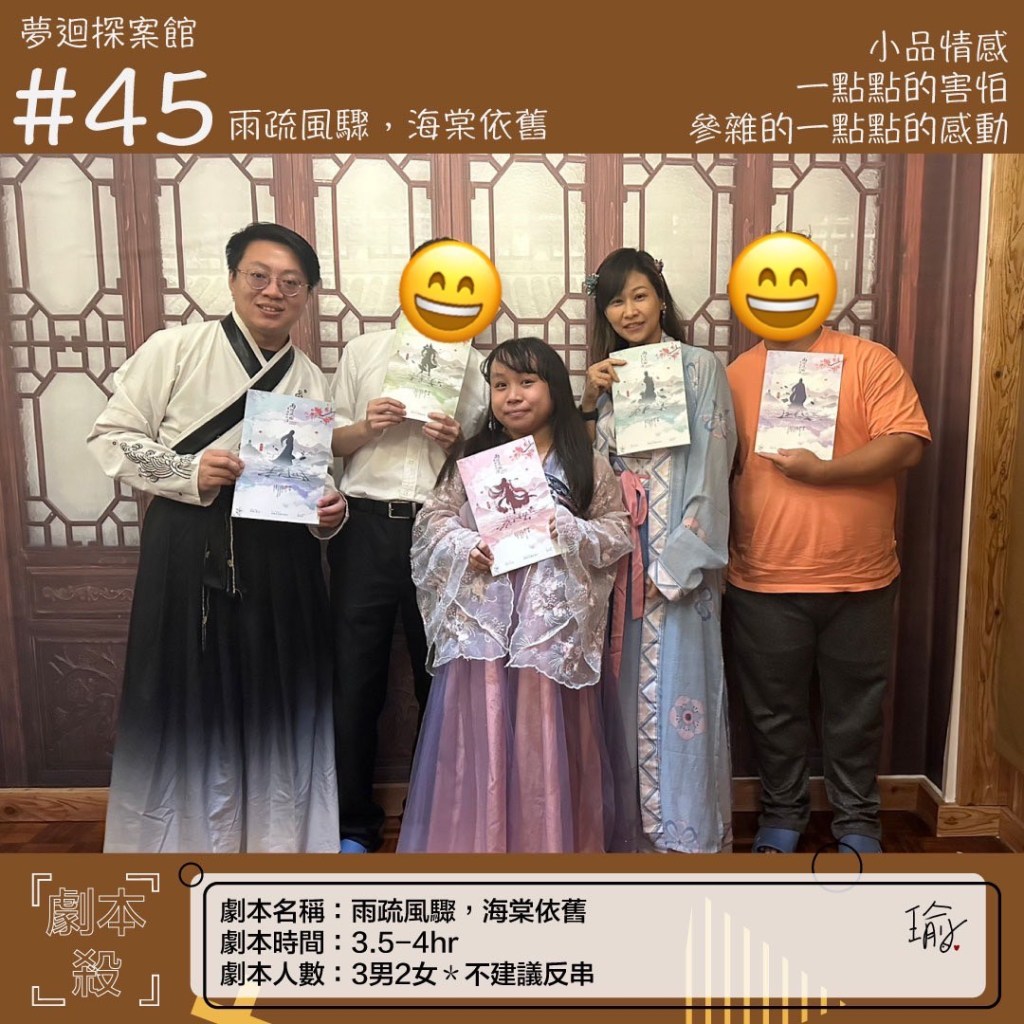 👥人數:3男2女 *不建議反串