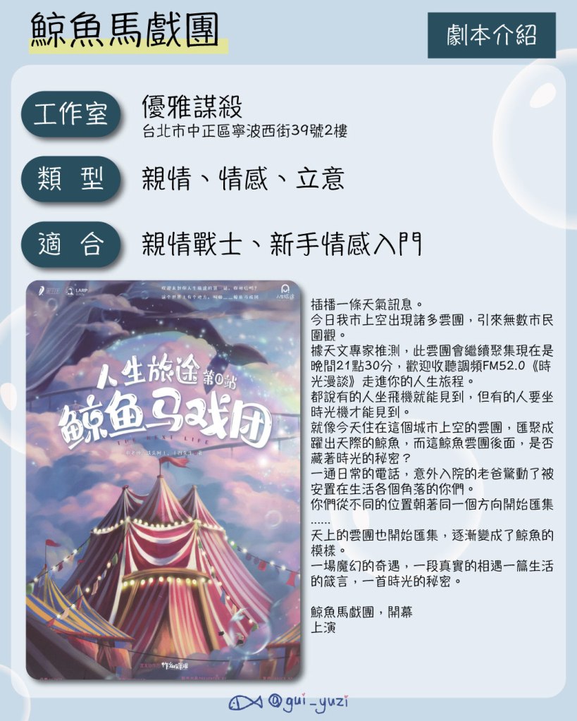 #優雅謀殺工作室 #台北劇本殺 #鯨魚馬戲團 #新手情感本 #鮭瑜子心得 #鮭瑜子 #劇本殺心得