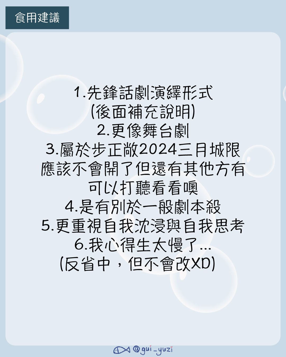 📒類型:情感沈浸、舞台劇、先鋒劇場