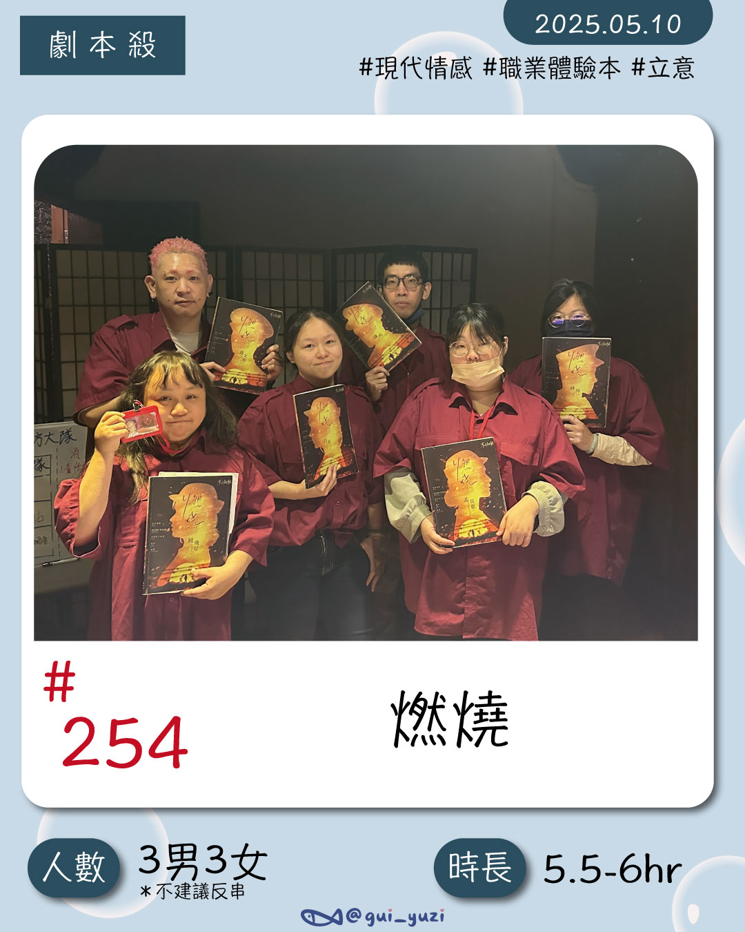 👥人數:3男3女 *不建議反串