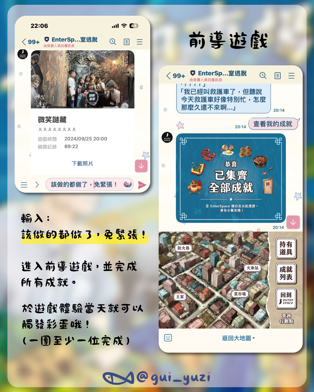 在EnterSpace官方LINE@帳號輸入「該做的都做了,免緊張!」完成前導任務後,去體驗大直南市場的時候,就有機會觸發彩蛋哦!