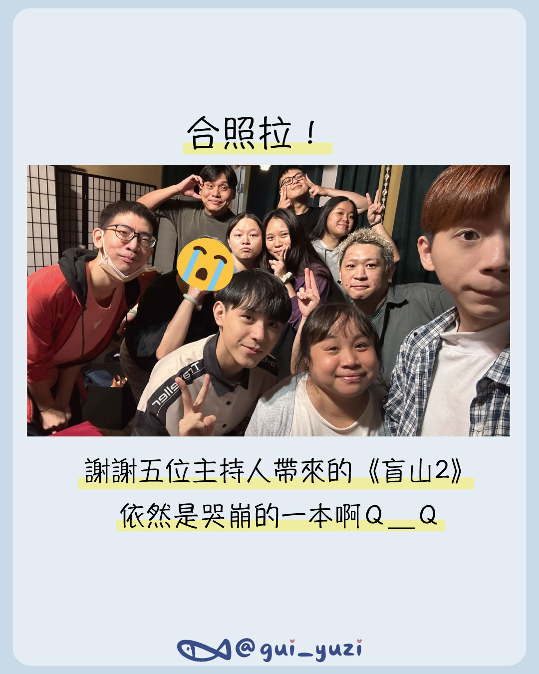 另外,體驗前非常建議先說好彼此互動的界線。因為這是一款「高互動、高沈浸」的作品,一旦登上盲山,氛圍就正式開始。只要一個人出戲、嬉鬧,整體氣氛都可能被打破。