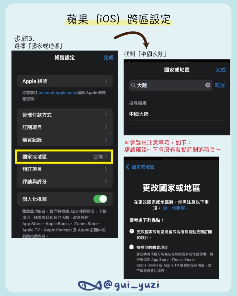 接下來是我自己簡單做的iOS的跨區設定囉!