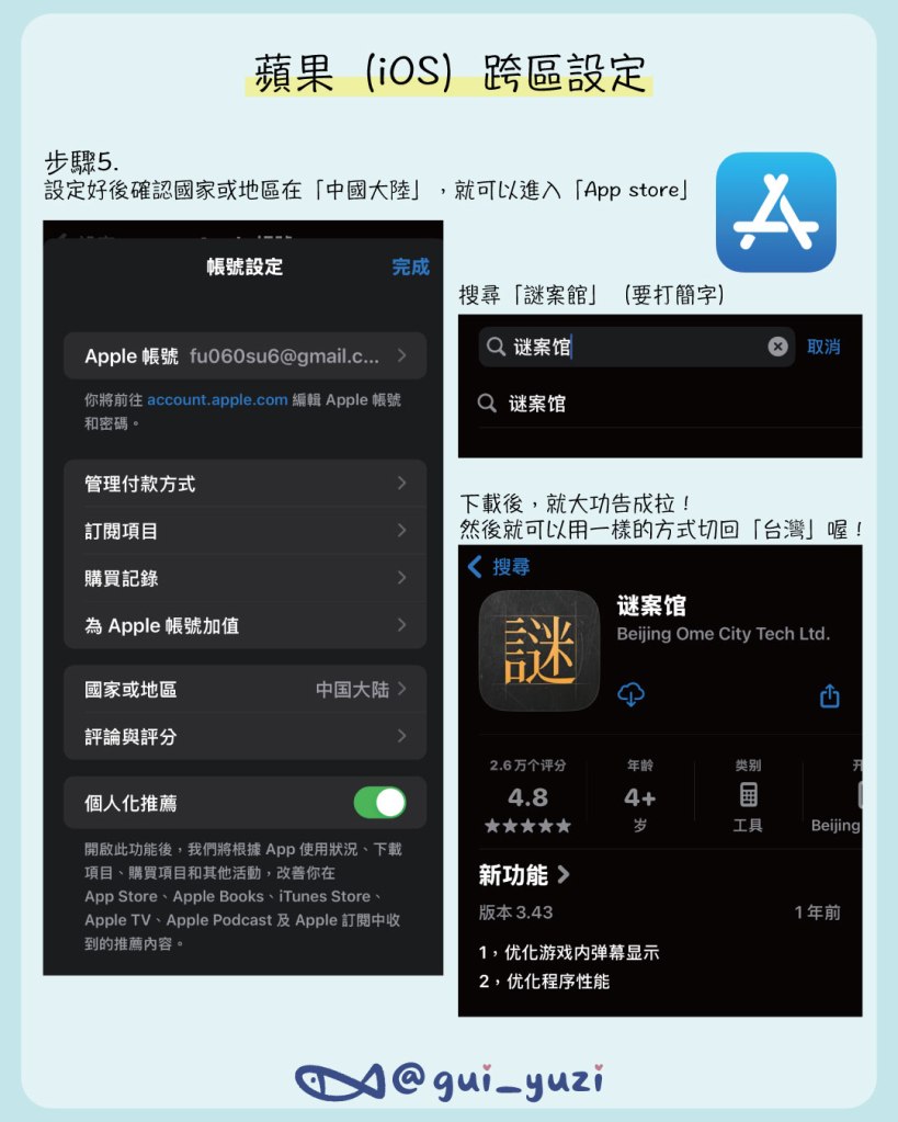 詳細流程:「iOS App Store跨區教學」、「Android Google Play跨區教學」(PS:Android版的我沒試過,還請見諒啊~)