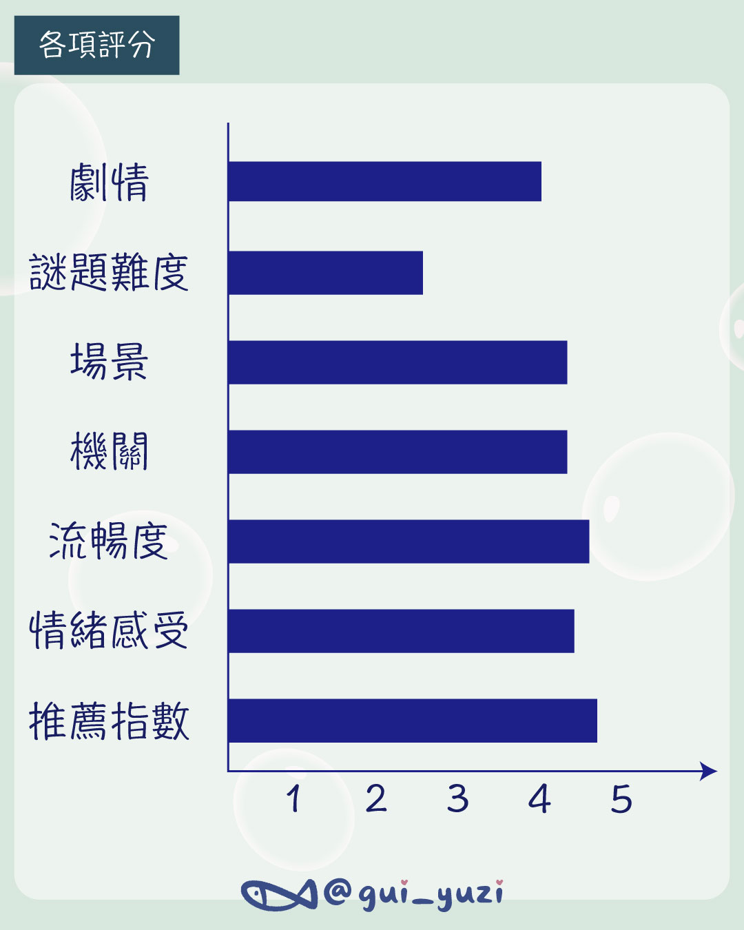 1.謎題量不多,以劇情沈浸聲光表演為主