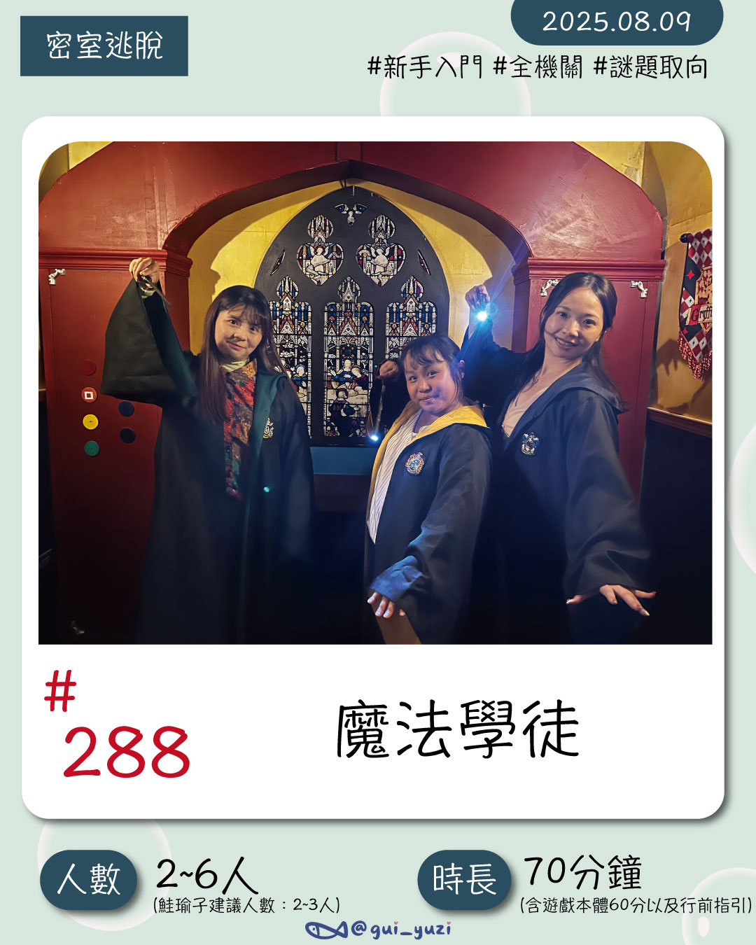 整體來說,《魔法學徒》是一款新手向的小品密室,氛圍輕鬆有趣,謎題清晰、場景精緻,全程都洋溢著魔法感。雖然劇情較為薄弱,主要是作為謎題的點綴與服務,但謎題設計本身相當順暢,多為單線解謎,因此建議不要帶太多人參與,最多四人會比較好,不然會有散步在魔法世界的情況。